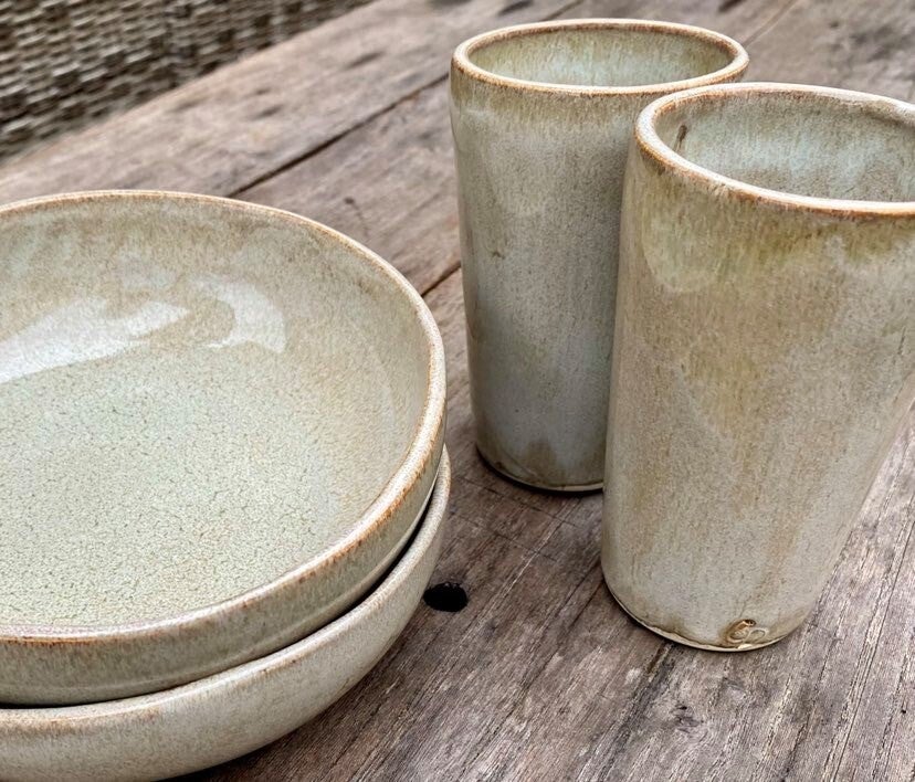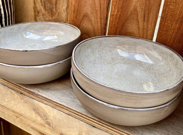 Set van 4 kommetjes Alice 16 cm in grijze klei, binnenzijde geglazuurd. Zeer veelzijdig kommetje te gebruiken als ontbijtkommetje , slaatjes , tapas …