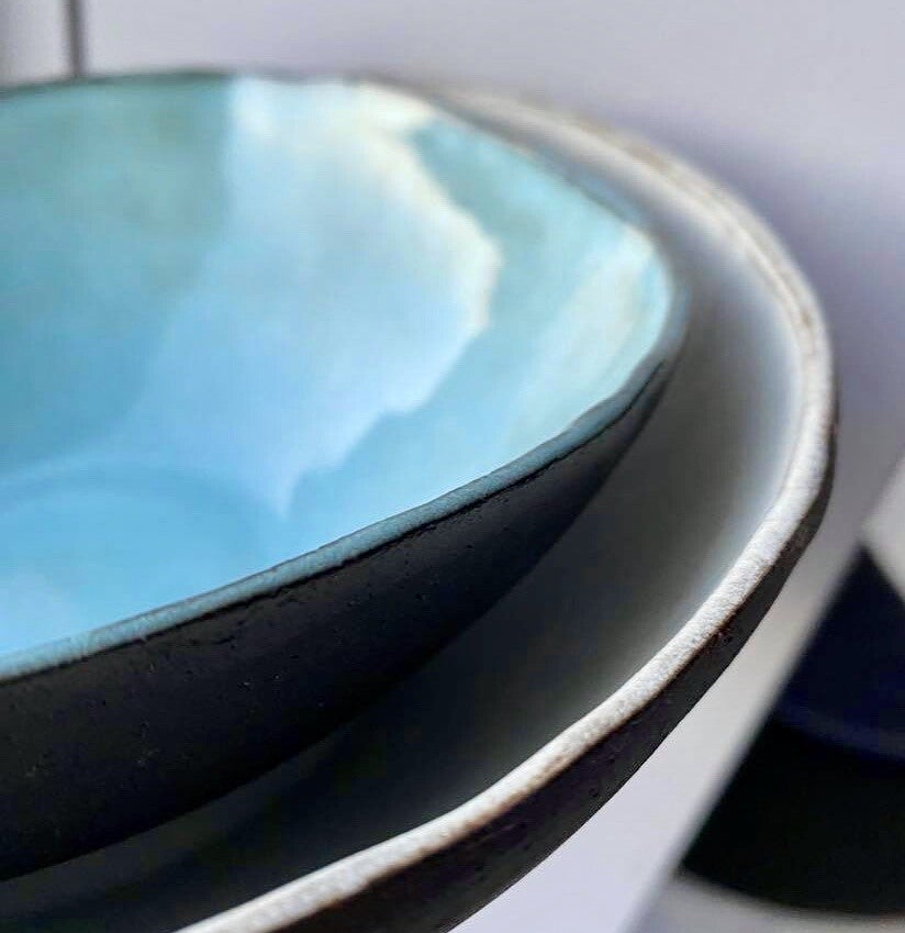 Set van 2 Colettejes , 20 en 24 cm. Gemaakt in zwarte klei, binnenzijde is geglazuurd.