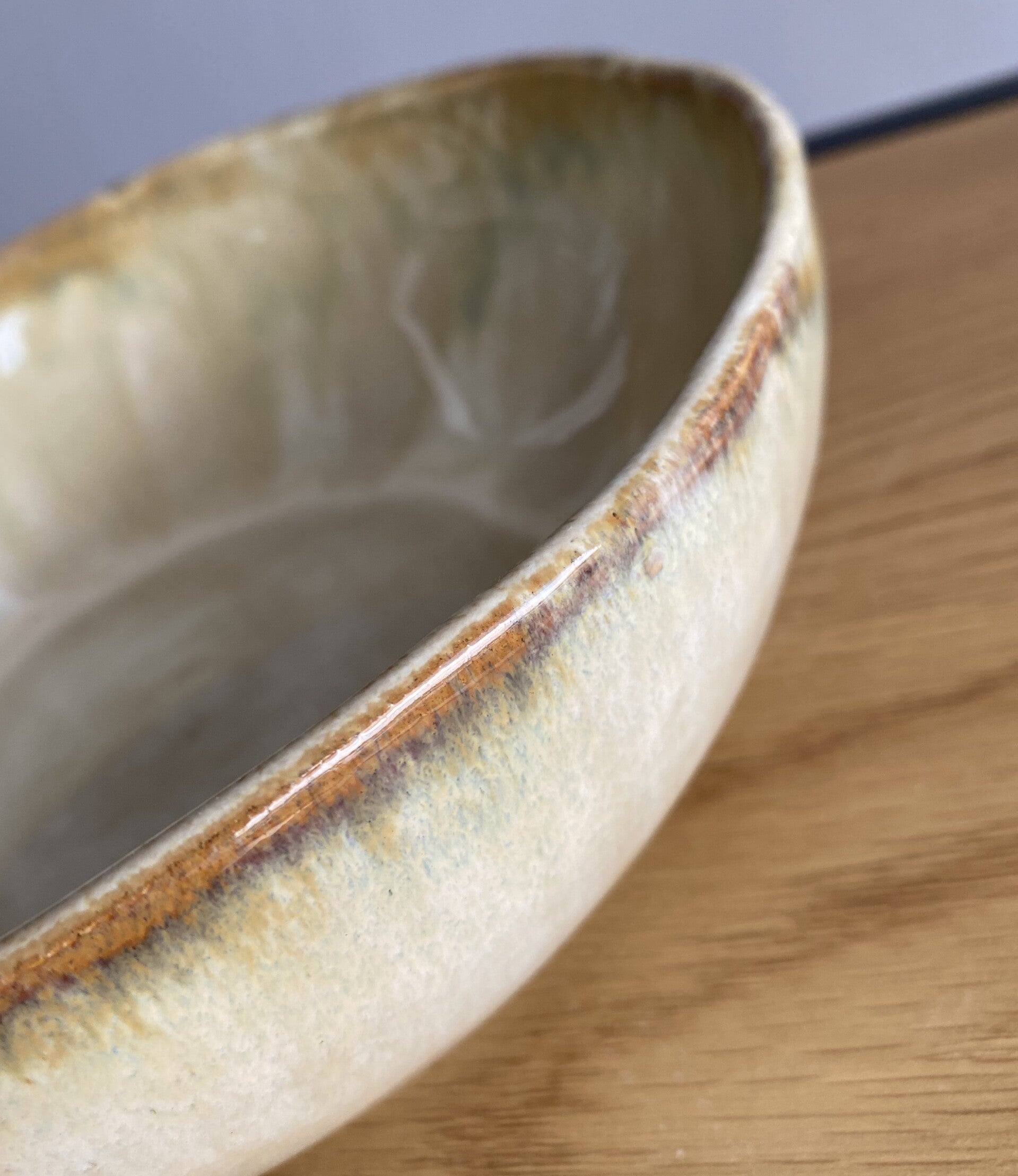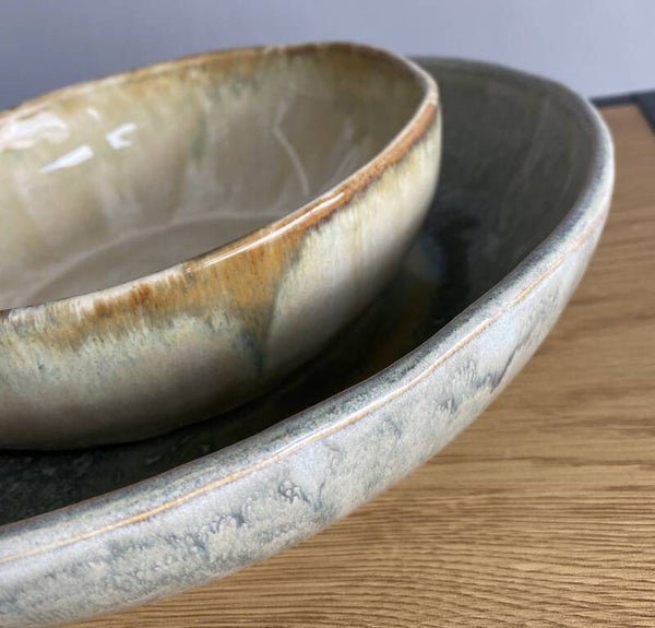 Pelagie een maatje kleiner, 20 cm diameter! Gemaakt in witte klei, binnen en buitenzijde geglazuur.